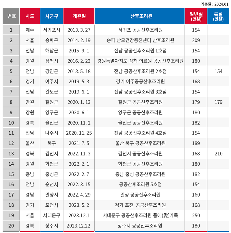 전국 공공산후조리원 가격비교 리스트 확인은 아래 링크를 클릭!!