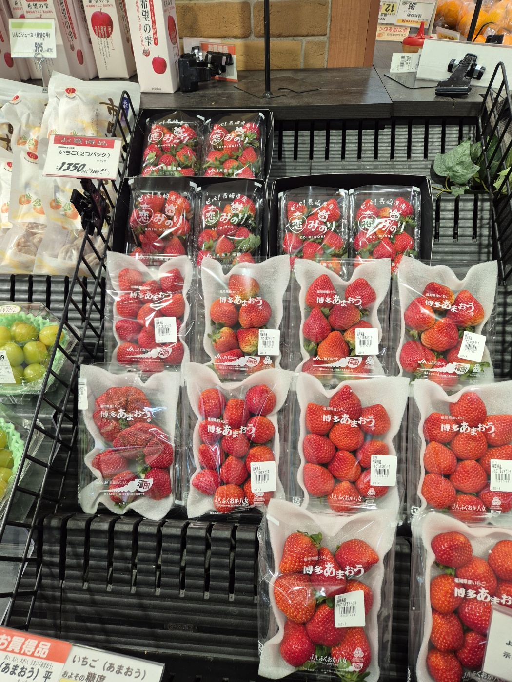 어떤 맛일까 궁금하실것 같아서 검색을 해보니 베니홋뻬는 산미가 적고 빻갛고 큰모양에 단맛이 12~13정도로 높은편입니다.토치오토메는 달고 산미가 중간정도로 단단함이 있어 케잌의장식으로도 많이쓰인다고 합니다. 그리고 かい」「るい」「おきい」「まい」 빨갛고, 둥글고,크고,맛있다 라는 글의 앞글자만 따서 아마오우 라고 합니다. 일본여행 오시면 한번 드셔보세요!