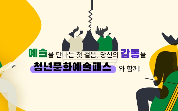 이 기회를 놓치지 말고 청년 문화예술패스로 다양한 문화예술을 즐겨보세요!