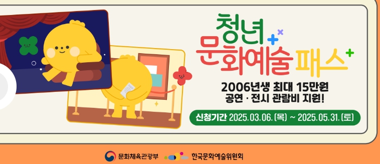 - 신청 방법: 청년 문화예술패스 공식 누리집에서 신청 가능