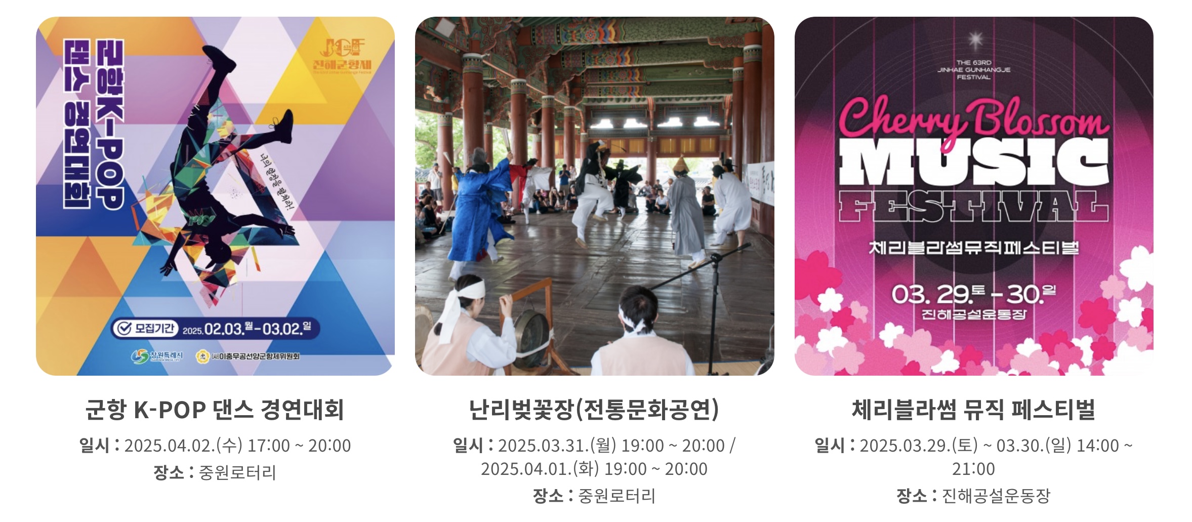 - 체리블라썸 뮤직 페스티벌 - 다양한 아티스트가 참여하는 야외 음악 축제 (3월 29일~30일, 진해공설운동장)