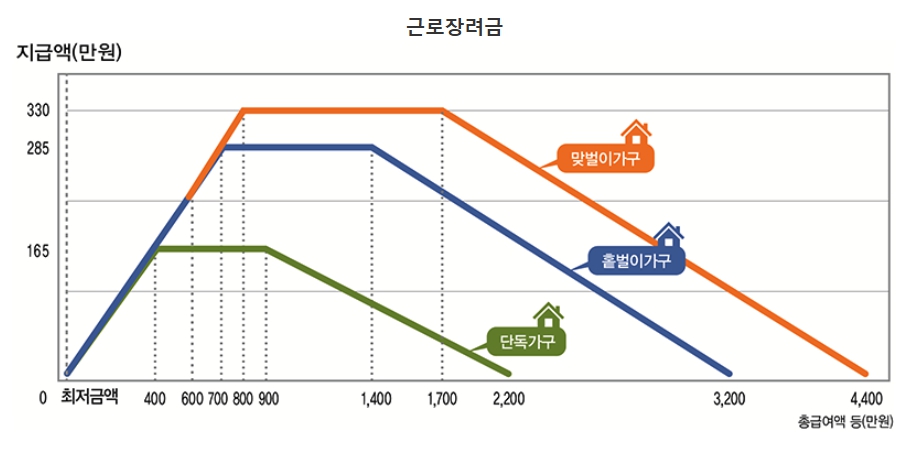| 홑벌이 가구 | 3,200만 원 미만 |