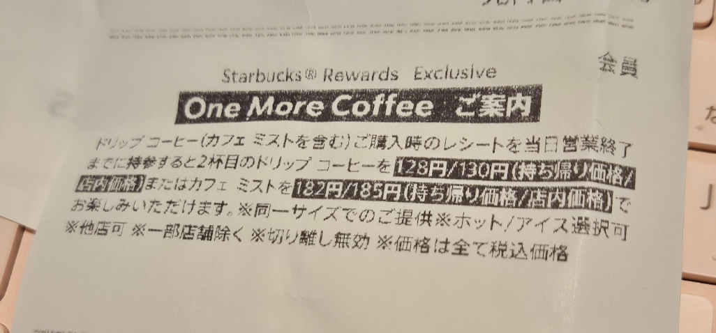 테이크아웃128엔 / 매장 130엔에 드실수 있습니다!