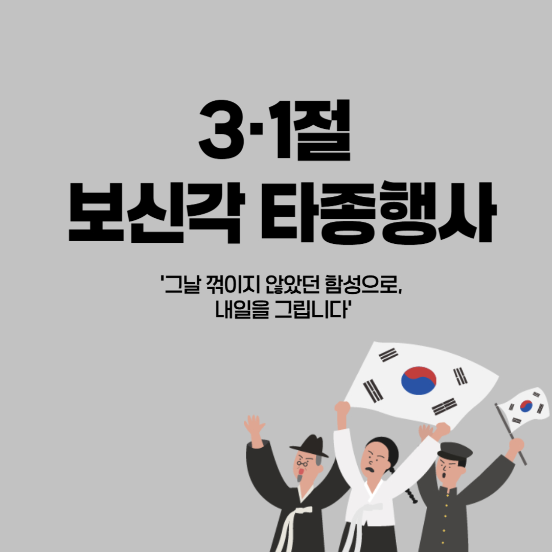 올해 3·1절에는 보신각에서 울려 퍼지는 종소리와 함께 그날의 정신을 다시 한번 되새겨 보면 어떨까요? 독립운동가들의 용기와 희생이 있었기에 우리가 오늘을 살아갈 수 있다는 사실을 기억하며, 더 나은 내일을 위해 함께 나아가길 바랍니다.